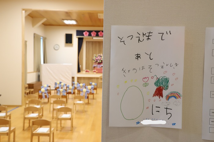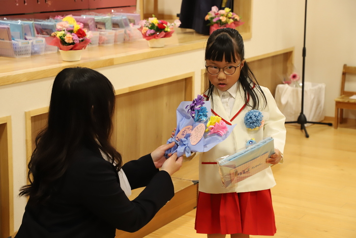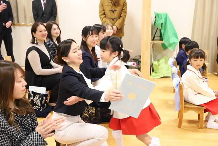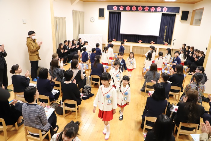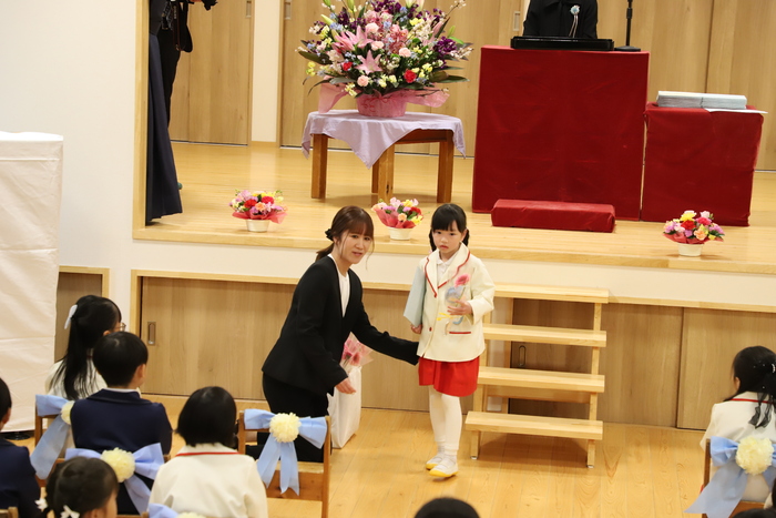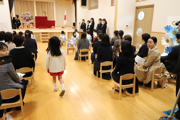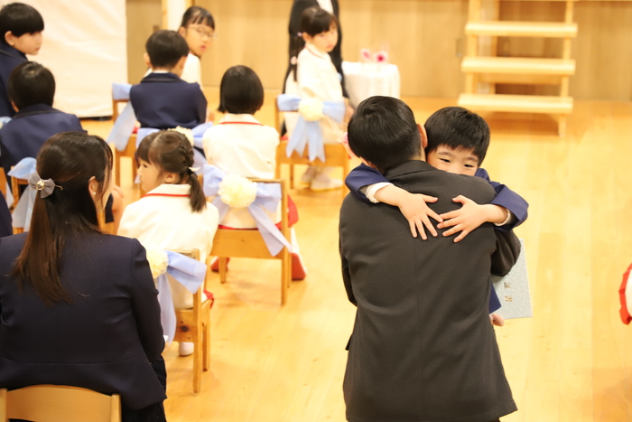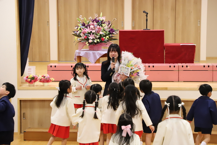 本日、Aグループの 卒園式を行いました🌸 子どもたちはそれぞれの思い出を胸に 堂々とした姿で卒園証書を 受け取っていましたよ📜 その姿からは、 この一年の成長と自信が しっかりと感じられ、 頼もしさが溢れていました✨ おわかれの言葉や歌では、 これまでの園生活を 振り返るような温かい時間となり、 保護者の皆様の中には思わず 涙を流される方の姿も見られました😢 また、毎日子どもたちと 過ごしてきた職員にとっても、 今日が一区切りであることを実感し、 目を赤くする場面もありました🍀 式の最後には、 担任の先生から子どもたちへ 心を込めたプレゼントを贈りました🎁 さらに謝恩会では、 保護者の皆様や子どもたちから 温かいお気持ちのこもった言葉と 綺麗な花束ををいただき、 職員一同、深く感謝しております😊 以下は、その時の様子です🌱 | ||