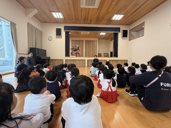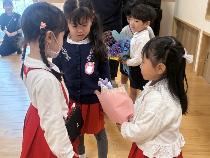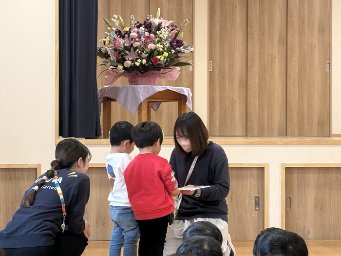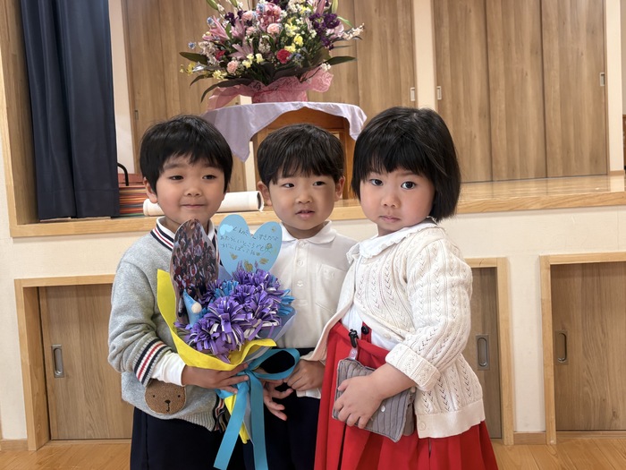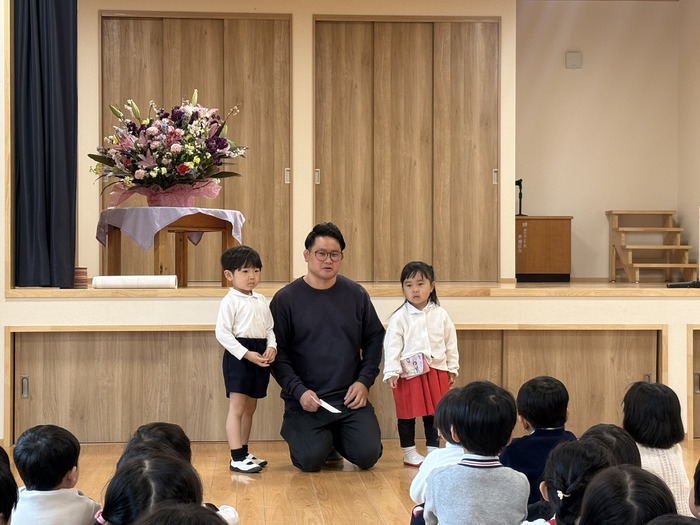 本日、ふたば組・Cグループ Bグループで終業式を行いました🌸 Aグループの卒園後の幼稚園は、 これまでの賑やかさが少し落ち着き、 どこか少し寂しさを感じる 一日となりました🍃 終業式では、 子どもたちは次の学年への 意識が芽生えているのか、 姿勢や返事がいつも以上に立派で、 成長を感じる姿が見られました✨ 園長先生からは、 春休みは次の学年に向けた 大切な準備期間であり、 しっかり食べて、たくさん寝て 風邪をひかないように、 怪我をしないように 元気にまた登園してほしいという お話がありました🌱 また本日は、 お引っ越しでお別れとなる お友だち2名と先生1名を、 みんなで温かく送り出しました👏 新しい場所でも 元気いっぱい過ごしてくれることを 心より願っています😊 他には歌やレクリエーションも楽しみ 和やかな雰囲気の中で 締めくくることができました🎵 以下は、その時の様子です🌱 | ||
