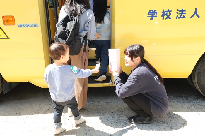 今日は特別に、 担任の先生が2名来てくれ、 名前呼びをしたり、 バスの中でお話をしたりと、 少し園生活を感じられる 時間にもなりました🍀