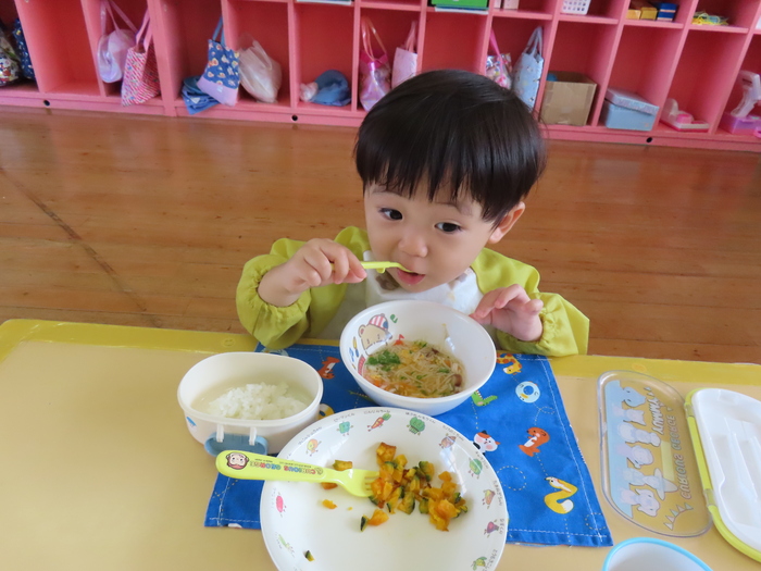 お星さまの人参が入った、見た目も涼しげなソーメンに嬉しそうな子ども達♡