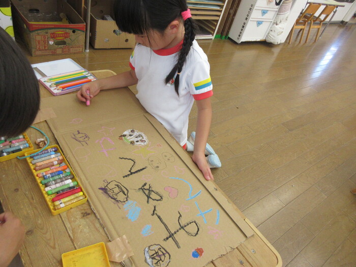 城陽小学校、地域の方との交流もしています。学校に招待してもらい、1年生が作った秋のおもちゃで一緒に遊んだり、音楽会を見に行ったりして小学校のお兄さん、お姉さんに憧れる姿が見られました。学校に行くのが楽しみだな~ | ||