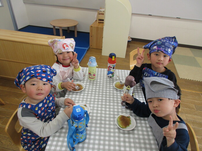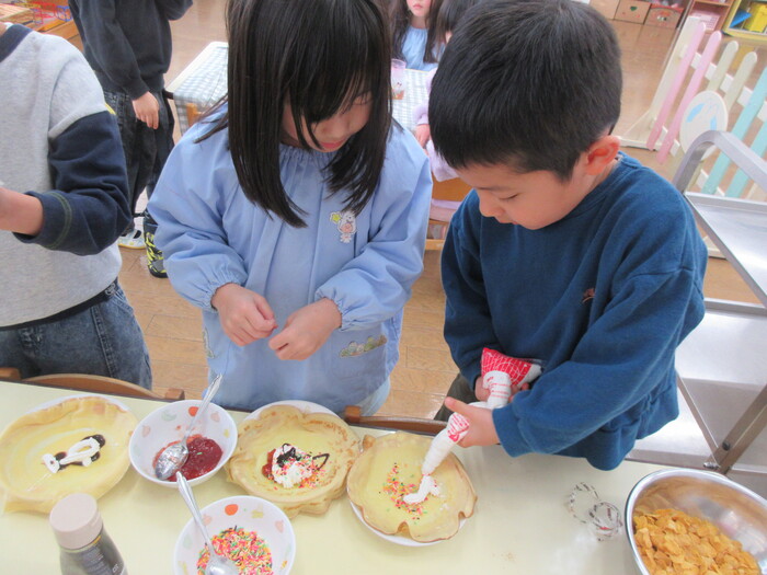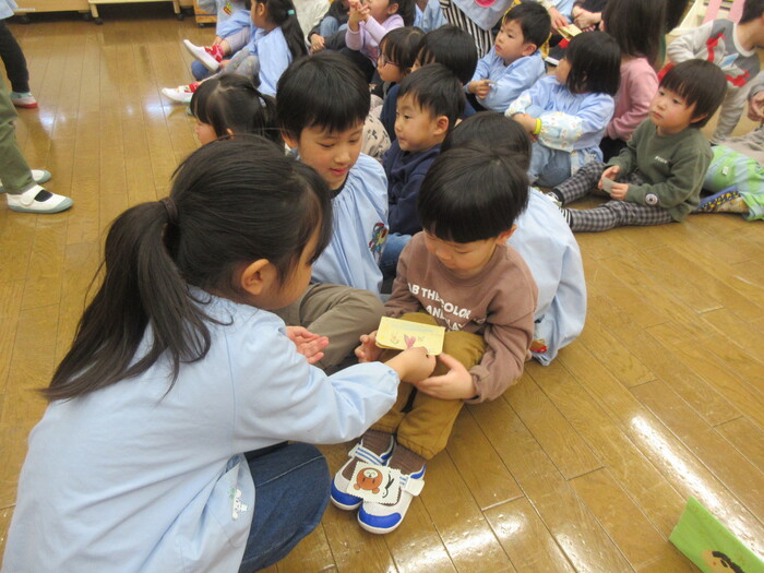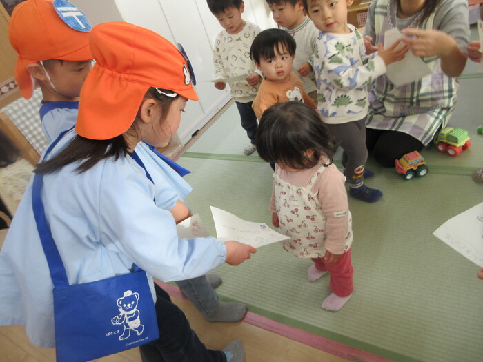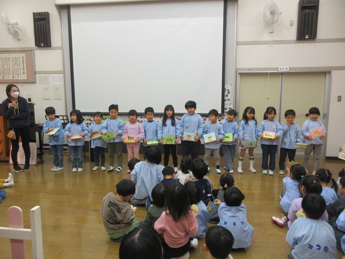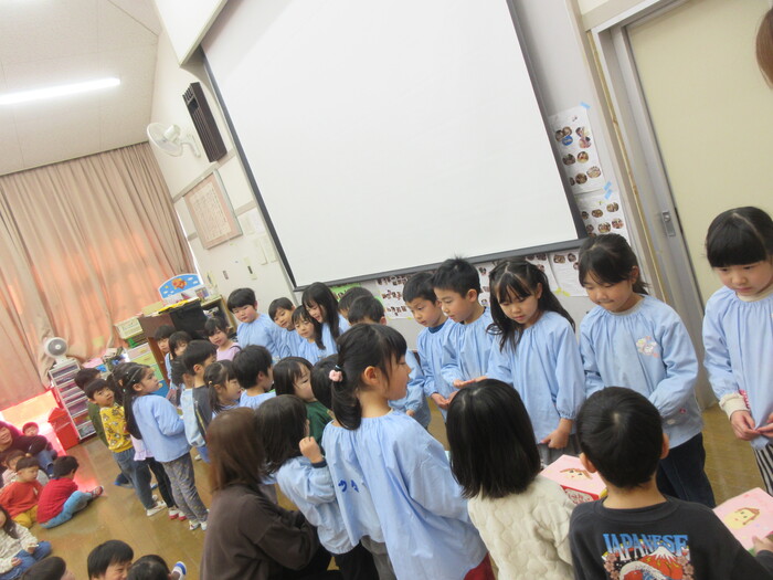 頼もしく、やさしいゆり組さんから、「ゆりさんって、かっこよくて、すごいな!」と憧れの気持ちをたくさん持った年下のお友達です。 卒園まで残り少ない日となりましたが、ゆり組さんとたくさんの思い出を作っていきたいと思います。 いろいろな遊びを経験し、自分で考え行動する力もつき、自分の思いを相手に伝えることが出来るようになり、たくましく成長してくれました。 笑顔で、自信を持って保育園を巣立っていってほしいと願っています。 | ||