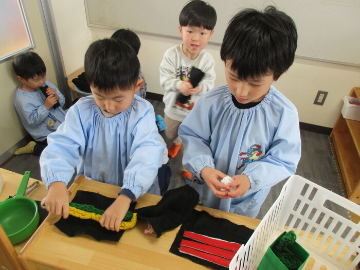 今までの経験を活かして、材料を自由に選択して製作することを楽しみました。自分なりに試行錯誤をし、それぞれ自由に表現し、どれも素敵なおひなさまができました♡ | ||