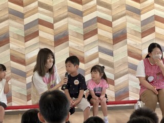 大勢の前で自分の名前や返事、いくつになったのかお話します♪