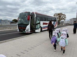 11月5日に年少組はバスに乗って荒神山公園に行きました! 初めてのバスに子どもたちは大喜びでした☆ お外でお弁当も食べておいしかったよ♪ | ||