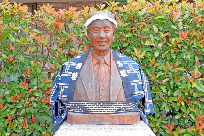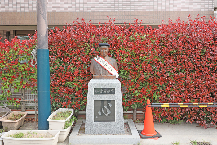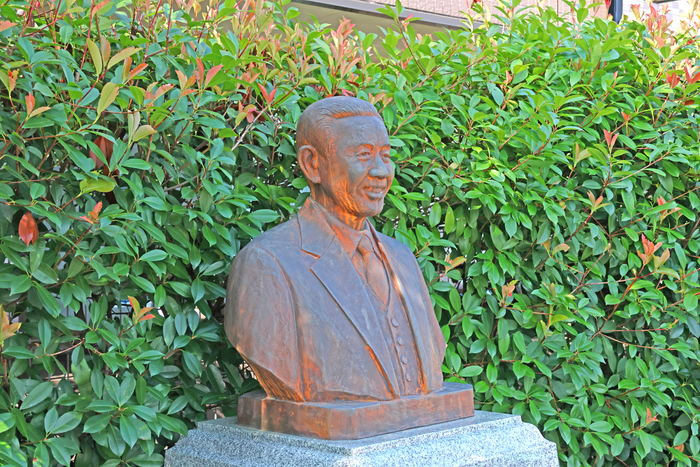 『日吉さくら幼稚園』の正門を入って少し歩いた正面に、銅像があります。これは、『日吉さくら幼稚園』の創設者である『栗原彌市(1904-1974)』先生の胸像です。この地に生まれた彌市先生は昭和29(1954)年11月、前身の『日吉幼児園』を開園されました。その後、生涯を閉じるまで、園の運営に尽力され、今日の『日吉さくら幼稚園』の礎を築かれました。 入園式、卒園式や運動会などの”特別な日”にちょっと変わった彌市先生に会えるかもしれません? | ||