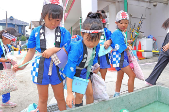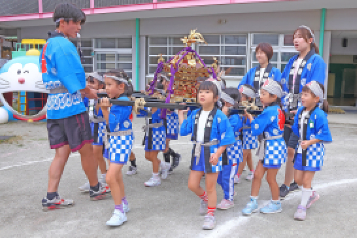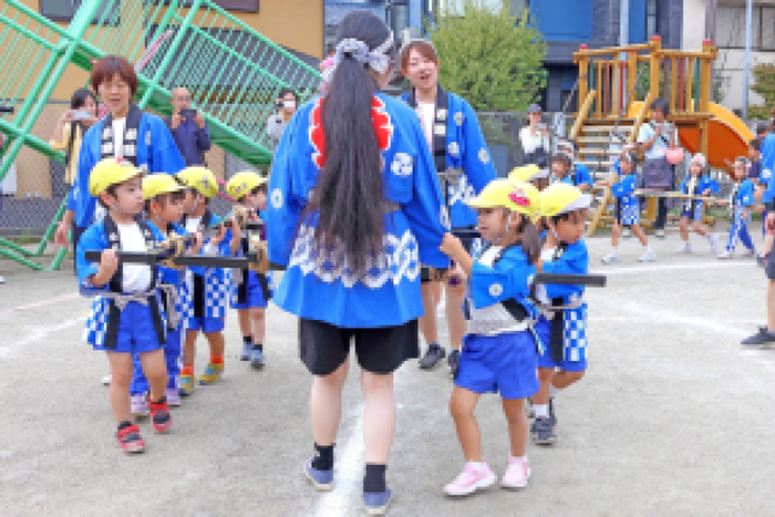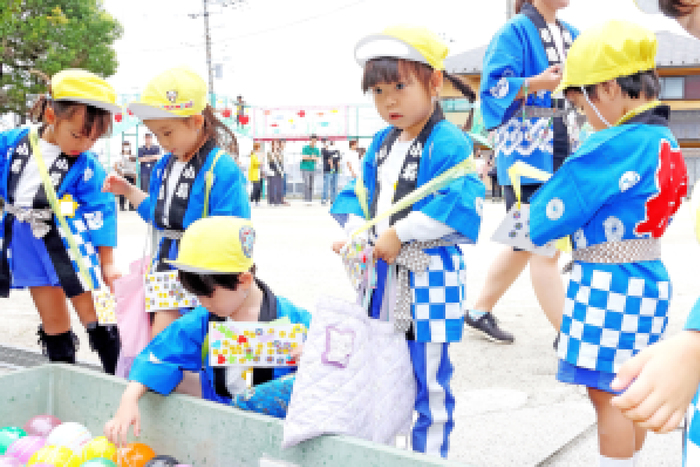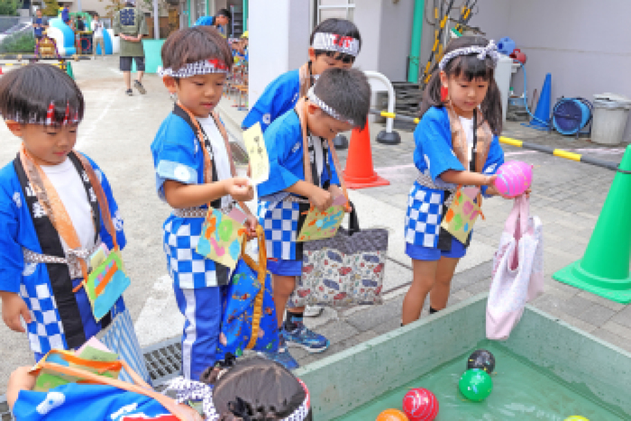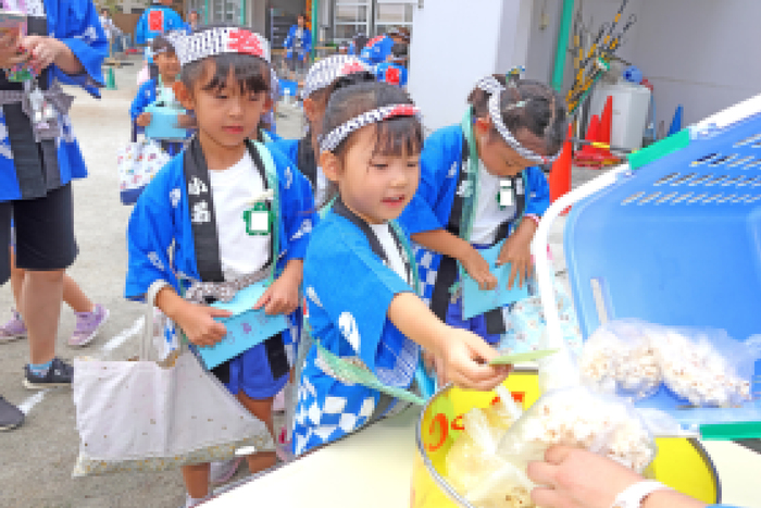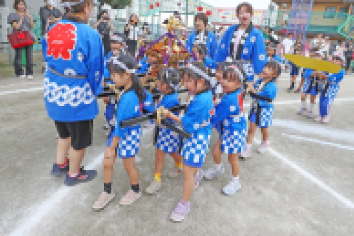 10/4 (土) 園庭にて、『おまつり』が行われました。当日は曇り空でしたが、雨に当たることなく、無事に終了する事が出来ました。 | ||