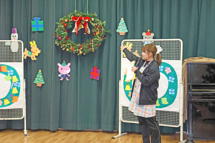 12/15 (月) 『クリスマス会』が行われました。当日は、天気にも恵まれて、楽しい『クリスマス会』になりました。 | ||
