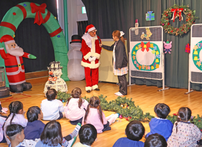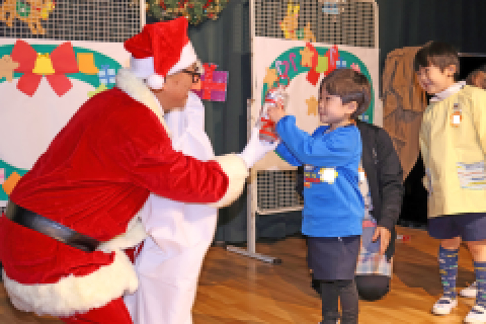 少し早い『クリスマス会』でしたが、ゲームをしたり、人形劇を観たり。サンタさんにプレゼントを貰ったりと、 みんな笑顔の楽しい時間を過ごしました。 | ||