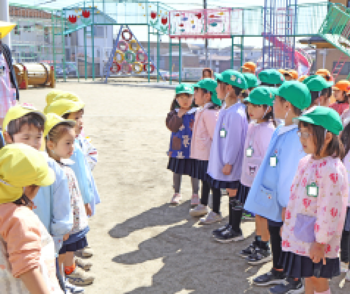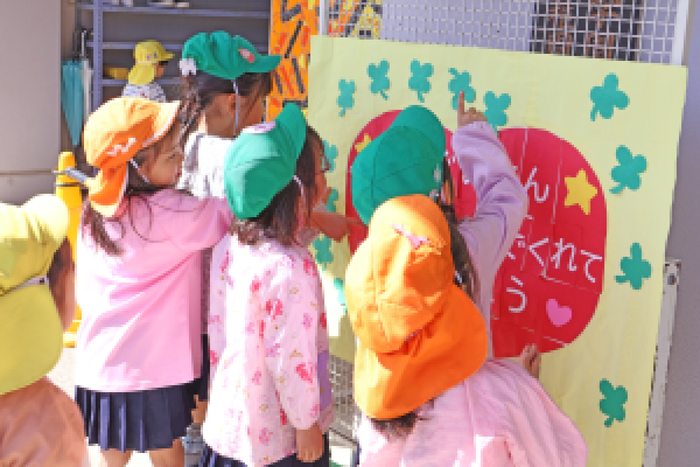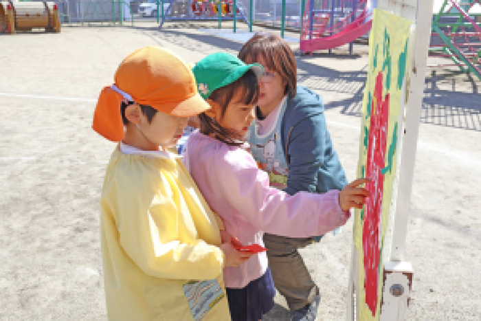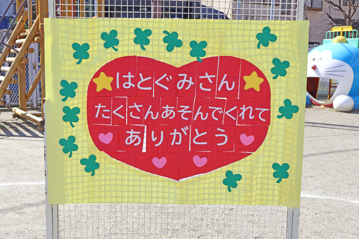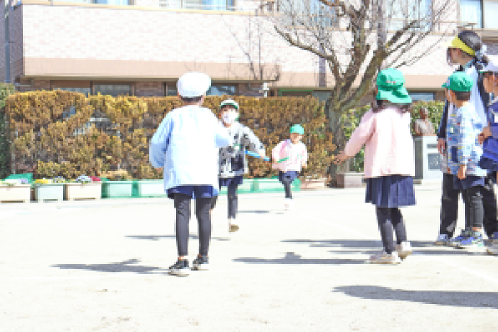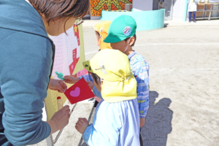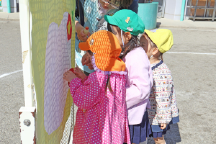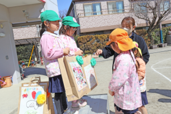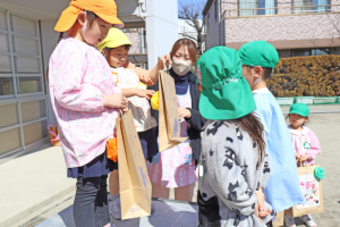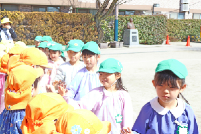 3/5 (木) 園庭にて、『お別れ会』が行われました。当日は天気にも恵まれて、みんなでゲームをしたり、プレゼント交換をして、その後は、園庭でお弁当を食べました。 | ||