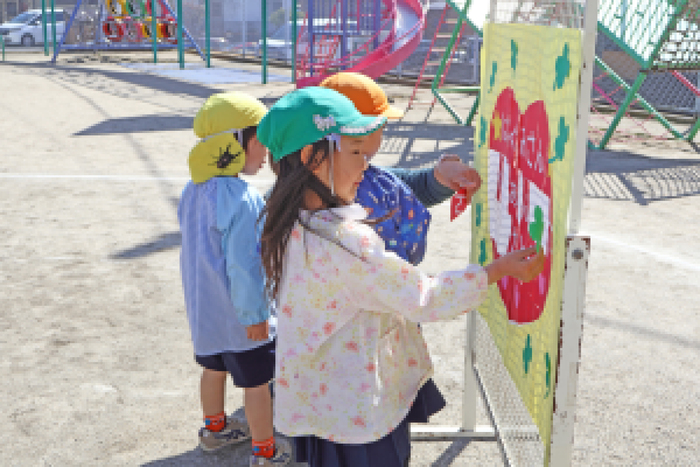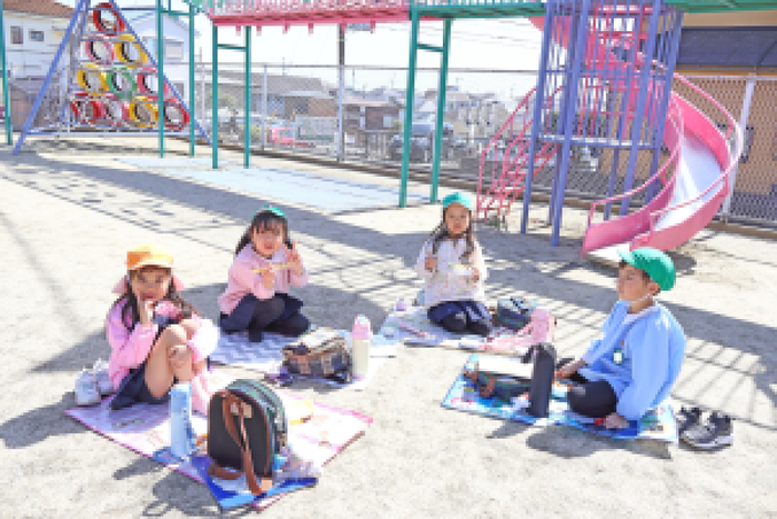当日は天気にも恵まれて、みんなでゲームをして、園庭でピクニック気分でお弁当を食べて、楽しい『お別れ会』になりました。 | ||