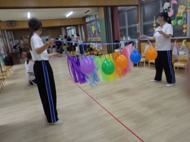 まずは障害物競争!ジャンプしたりくぐったり、最後は風船にタッチしてゴール🎈 | ||