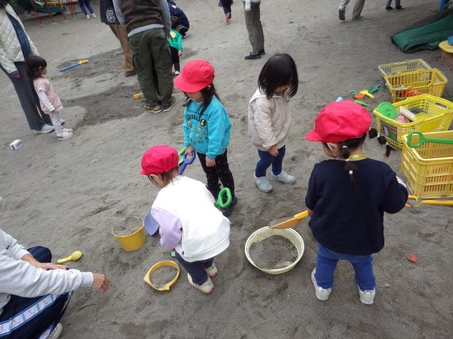 たくさんのお友だちが幼稚園に遊びに来てくれました。 満3歳児ひよこ組のみんなと一緒に戸外あそび | ||