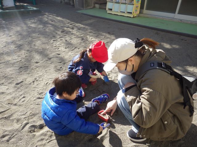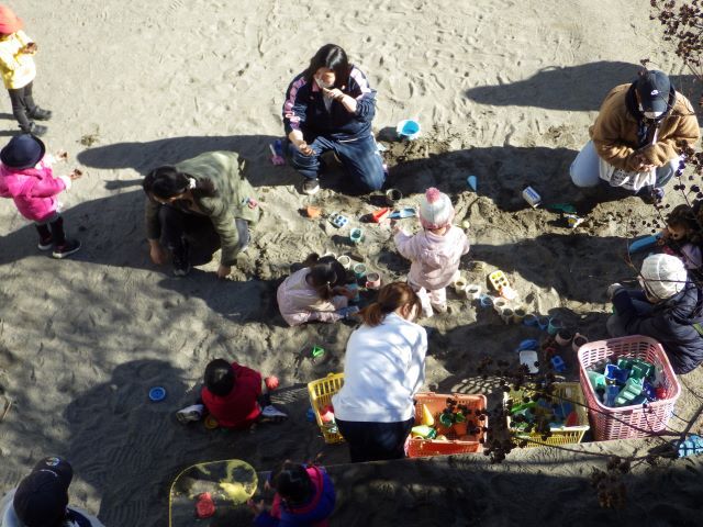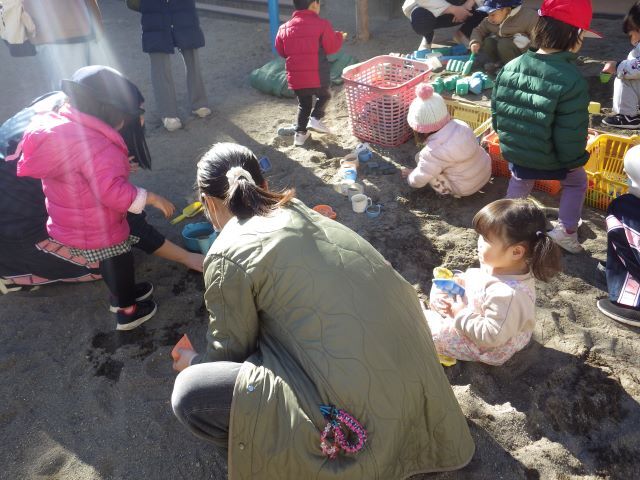 1月14日(水)園庭開放 小さなお友だちが園庭に遊びに来てくれました。 暖かい日差しの中、楽しく遊びました🌞 | ||