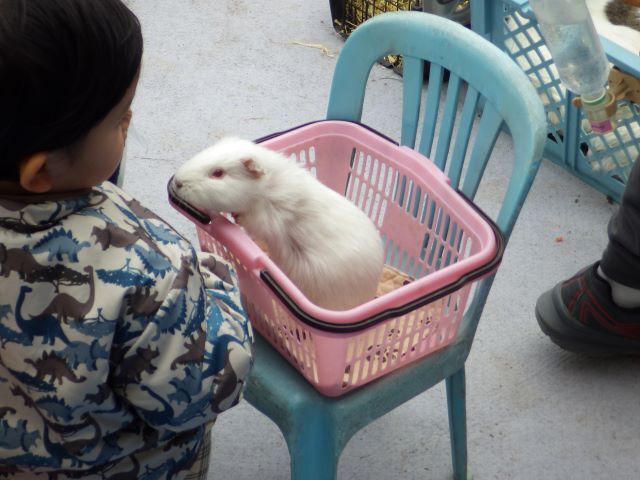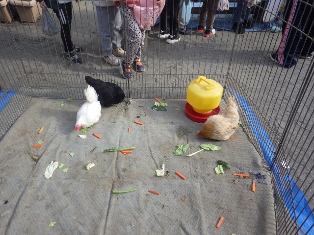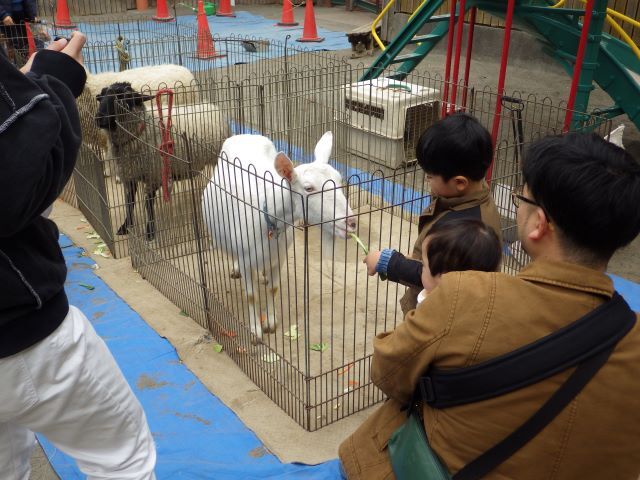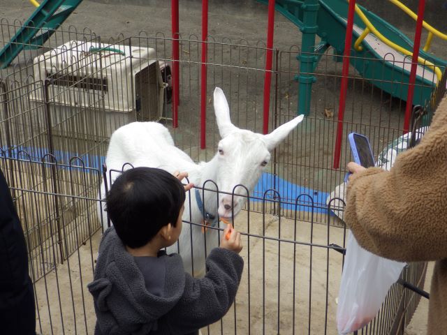 1月19日(月)移動動物園 入園前の小さなお友だちも移動動物で、色々な動物に触れ合いました🐰🐓🐑🐴🐥 | ||