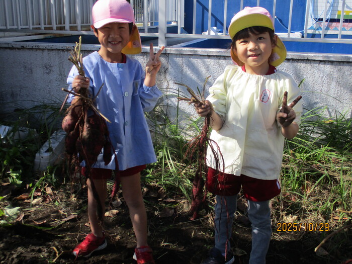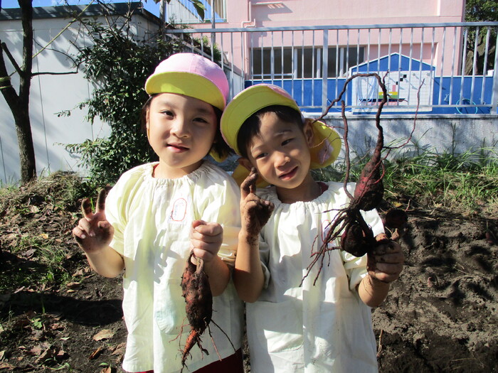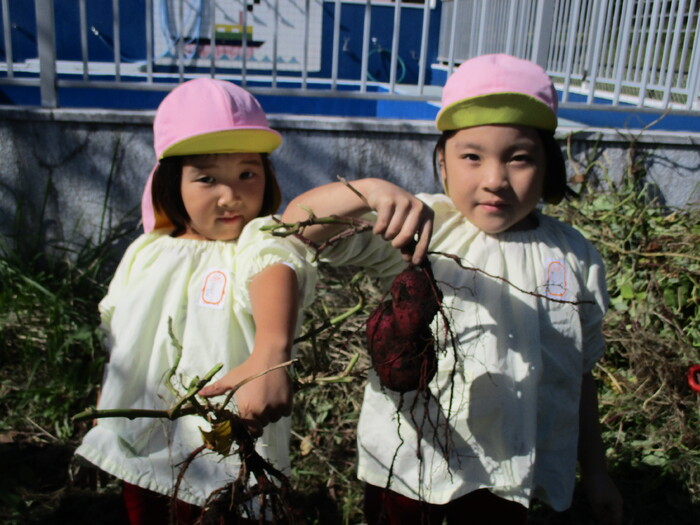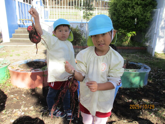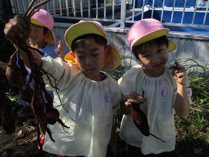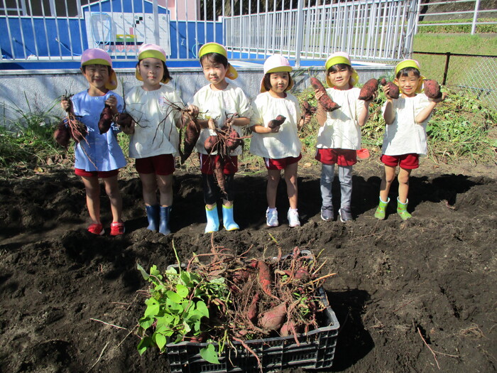 今までにないくらいの大収穫でした!🍠形は、様々でしたが嬉しそうにそれぞれお家に持ち帰りました💖さ~てどんなお料理に変身するのかな~楽しみで~~す💖 | ||