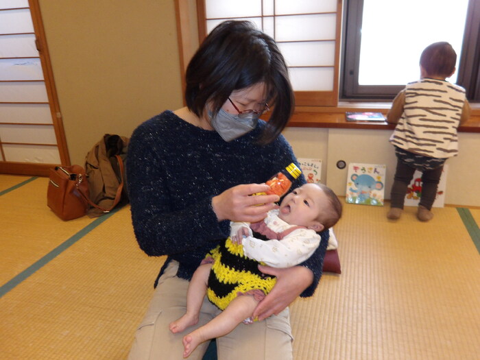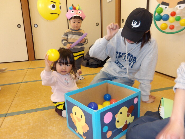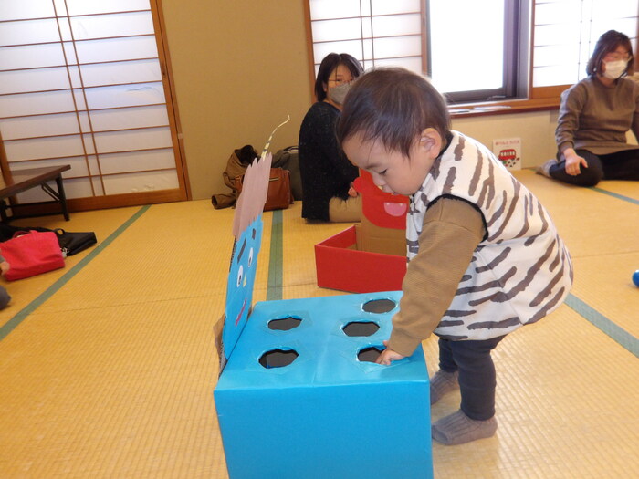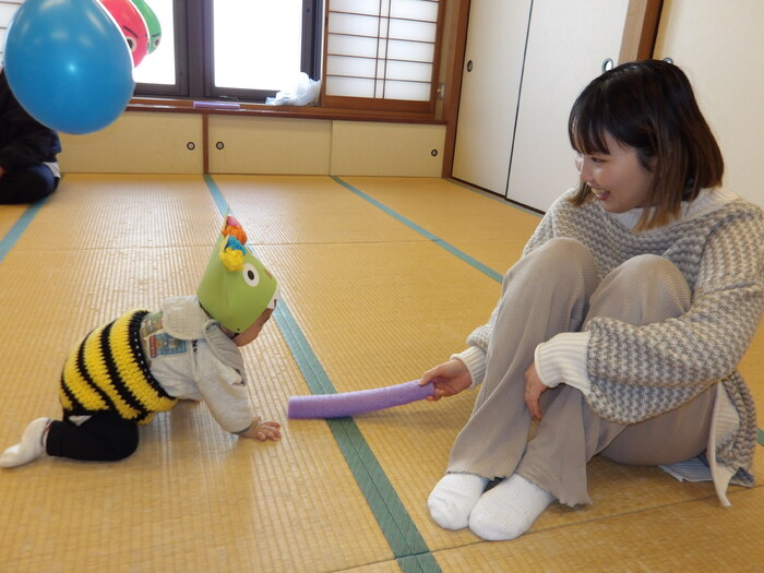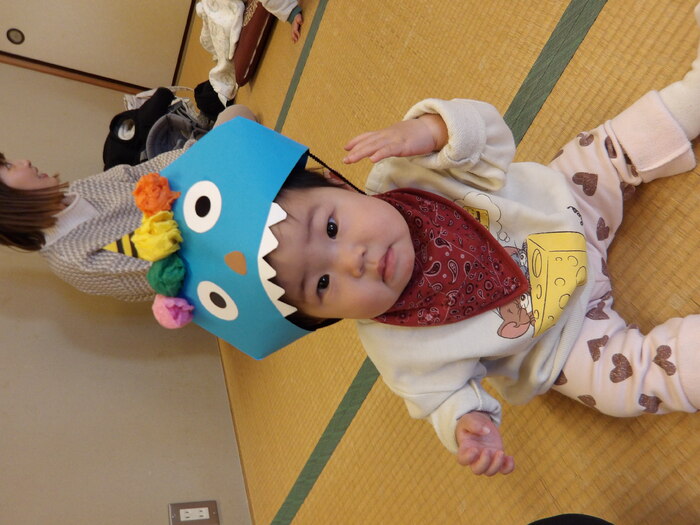 ・鬼のお面が可愛かったです! ・ほかのお友だちと触れ合えて良かったです。 ・初めての節分でしたが、楽しく過ごせました。 ・人見知りしながらもお友だちと鬼さんになりきって、楽しんでいました。 ・少しずつ先生やお友だちとの関わりに慣れてきたように思います。 また親子で遊びに来ます! ・いろいろな月齢に合わせた工夫が楽しかったです。 帽子やパンツで雰囲気倍増で可愛かったです。 など、たくさんの感想をいただきました。 「まめまき」というと鬼👹=怖いのイメージが強いのですが、参加いただいた皆様が笑顔で「まめまき」を体験出来たことが担当者も嬉しかったです。 今年は良い年になること、まちがいなしですね! | ||