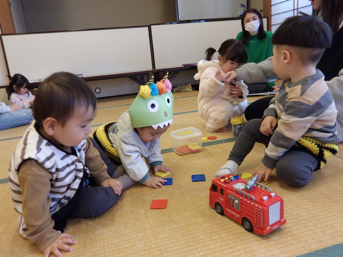 元気いっぱい「まめまき」を楽しんだ後は、みんなでおもちゃで遊びました。 | ||