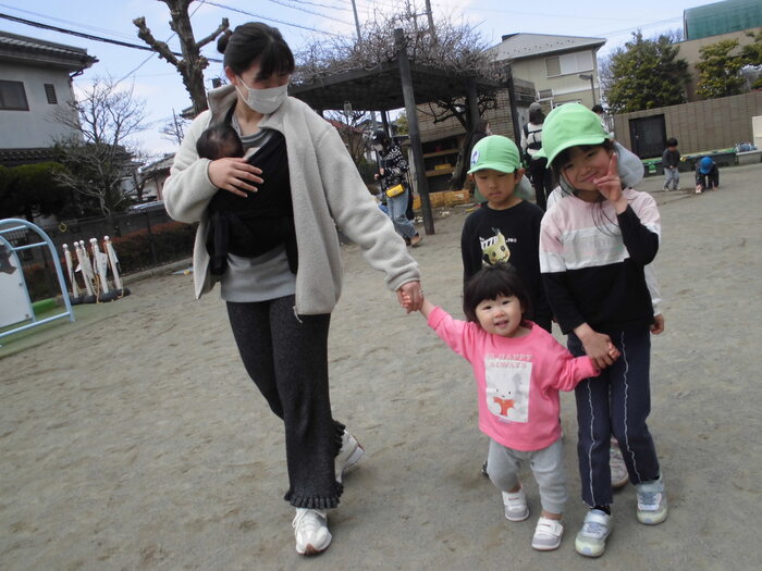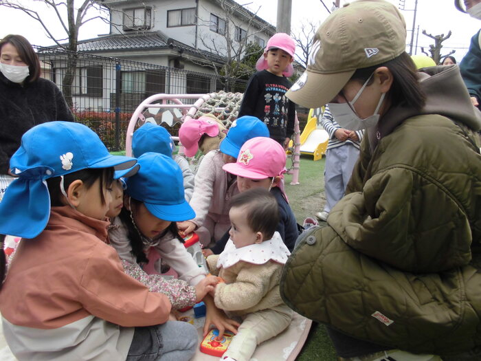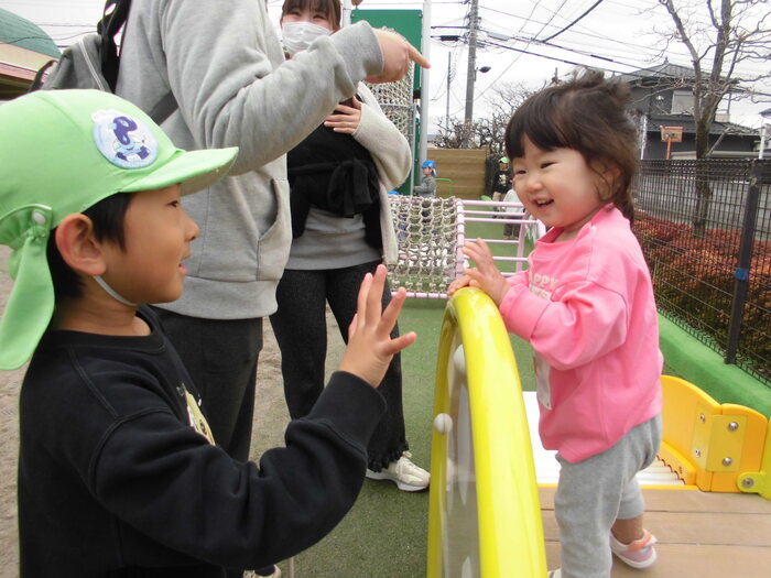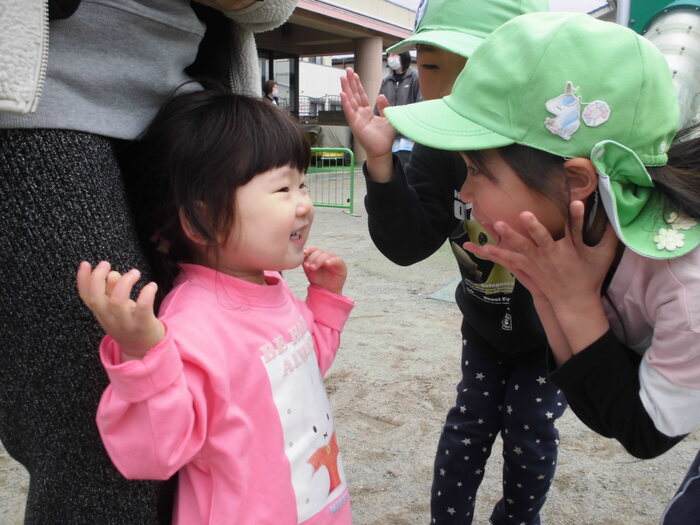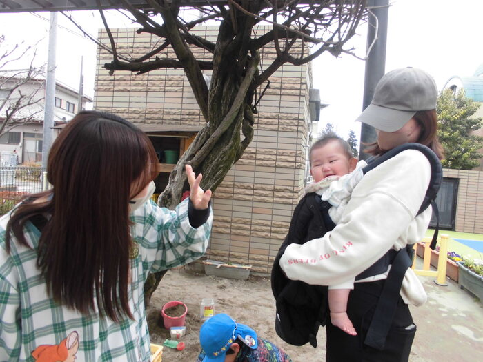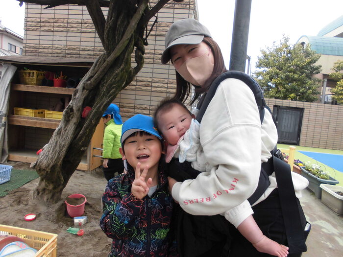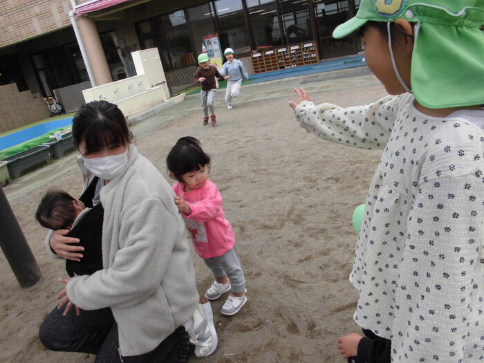 🌸アンケートより🌸 ・保育園生活がとてもよく想像できました。 ・初めは緊張していたけれど、慣れたら楽しそうでよかったです。 ・園児とたくさん遊べて楽しかったです。 ・最後のみんなの広場、砂場のおもちゃで遊べて楽しかったです。 兄弟2人共々楽しい時間をありがとうございました。 ・お友だちがたくさん声をかけてくれて楽しそうに遊んでいました。など みなさんが園児と楽しく遊んでいる様子が伝わり、嬉しく思いました! 保育園の子どもたちも小さなお子さんと触れ合い、嬉しそうでしたよ。 | ||