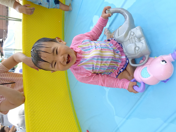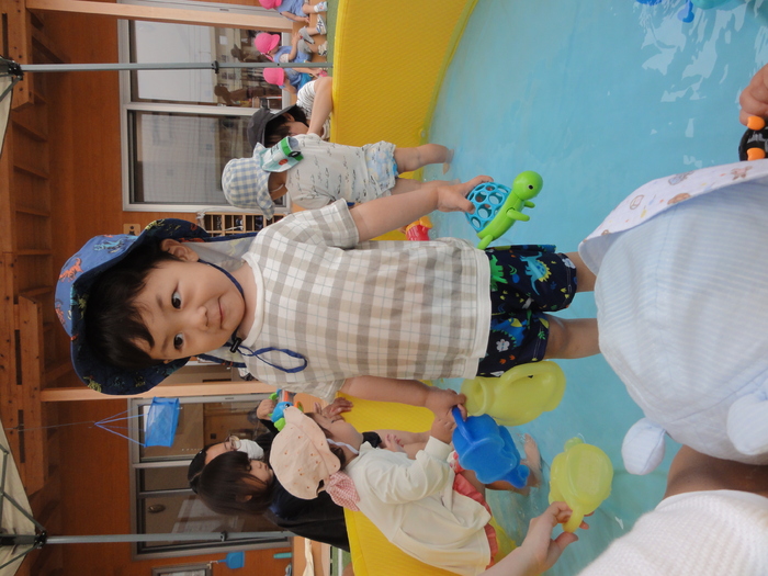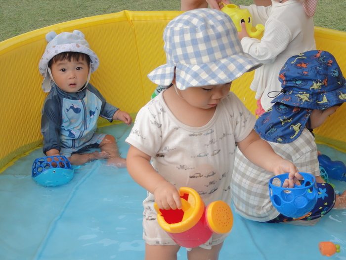 7月・8月のベビキッズは 「水あそび」でした☺ | ||