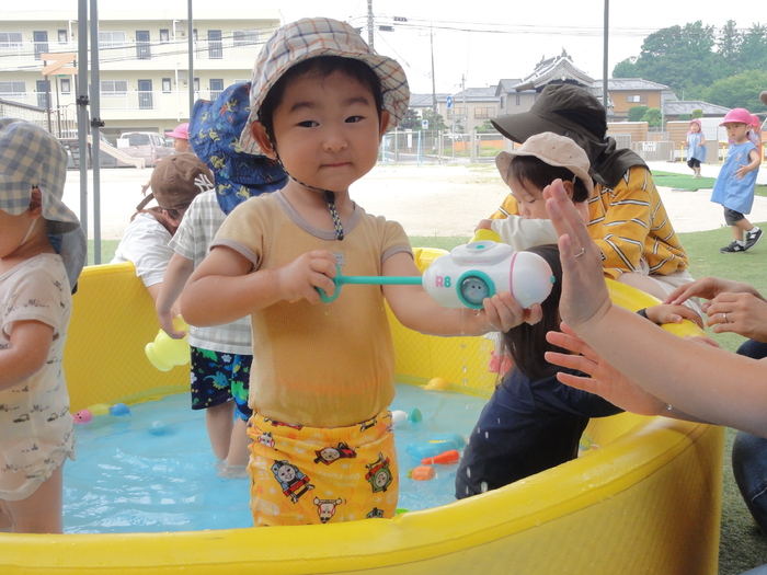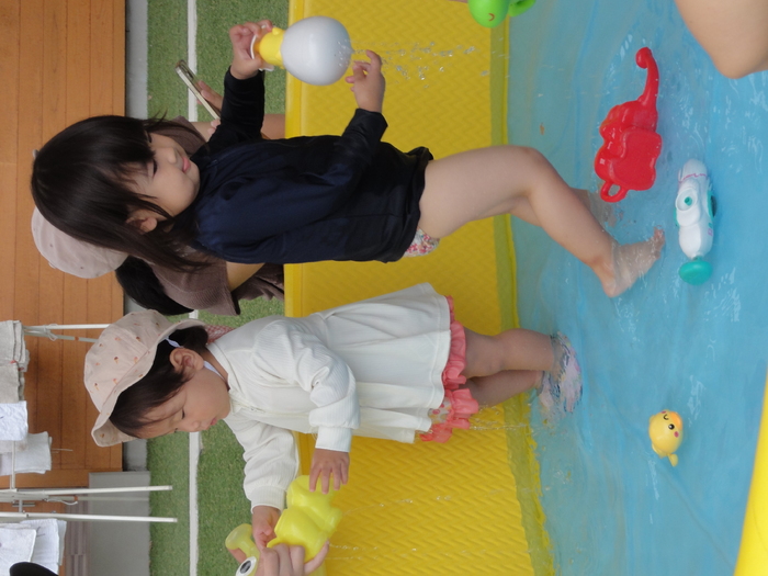 ジョウロや水鉄砲などで 楽しそうに水遊びを満喫していました♪ | ||