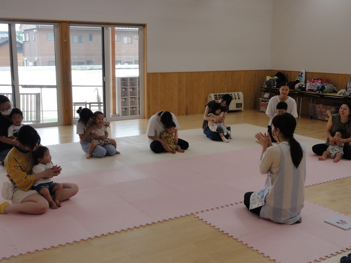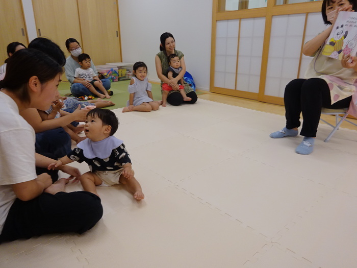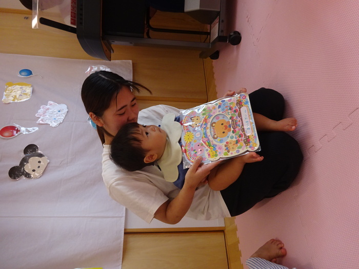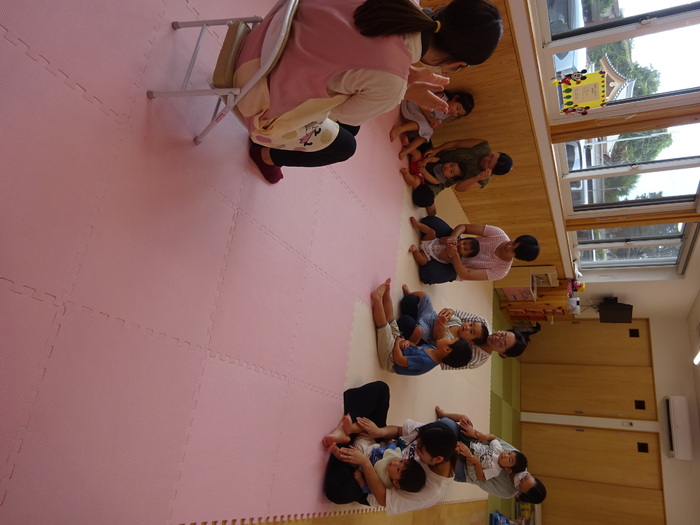 朝の会や読み聞かせの時間もママのお膝に座って ゆったり落ち着いて参加しています♡ | ||