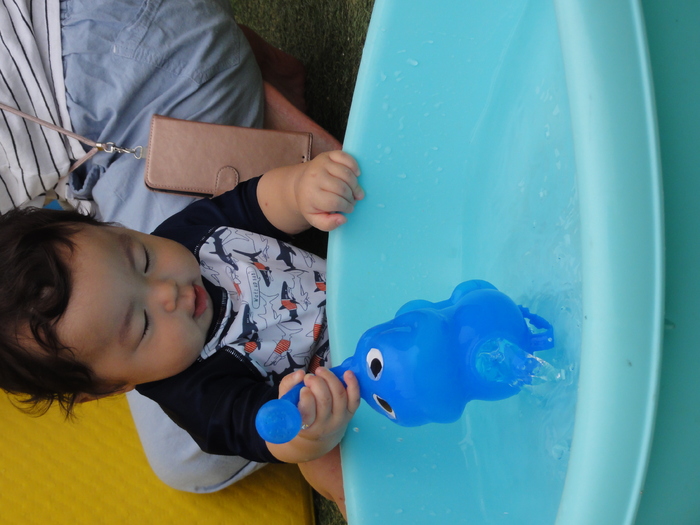 まだまだ暑い日が続いてますが… 暑さに負けず、バシャバシャと水遊びを楽しんでいたベビキッズさん♬ | ||