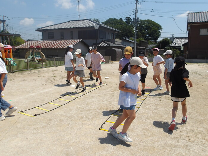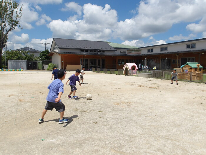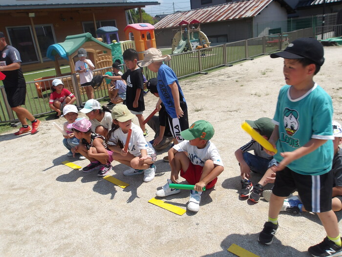 バドミントンで遊んでるよ!シャトルが後ろに…うわぁー!