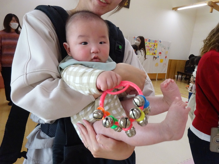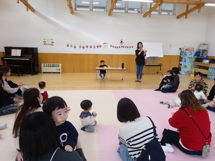 12月はクリスマス会・音楽あそびでした🎄 リトミック講師の大槻寿子先生をお招きし リズムに合わせて体を動かしたり 楽器あそびも楽しみました♪ | ||
