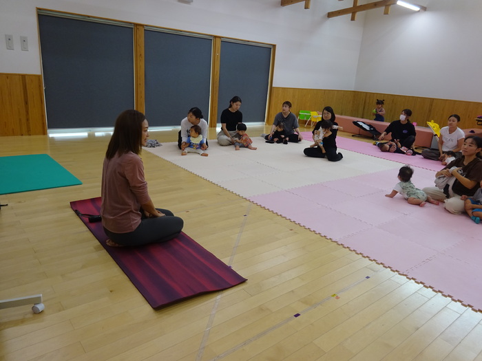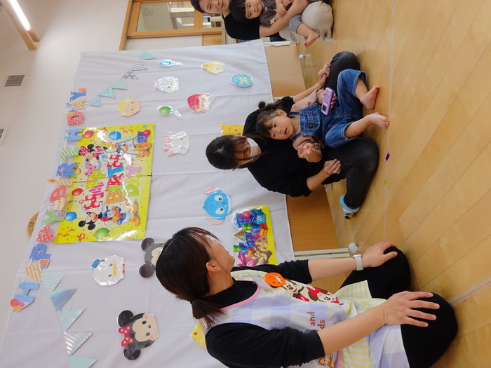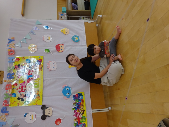 まず初めに誕生月のお友だちのお祝いをしました✨ 今月は講師の先生をお呼びしてベビーヨガを開催しました‼ | ||