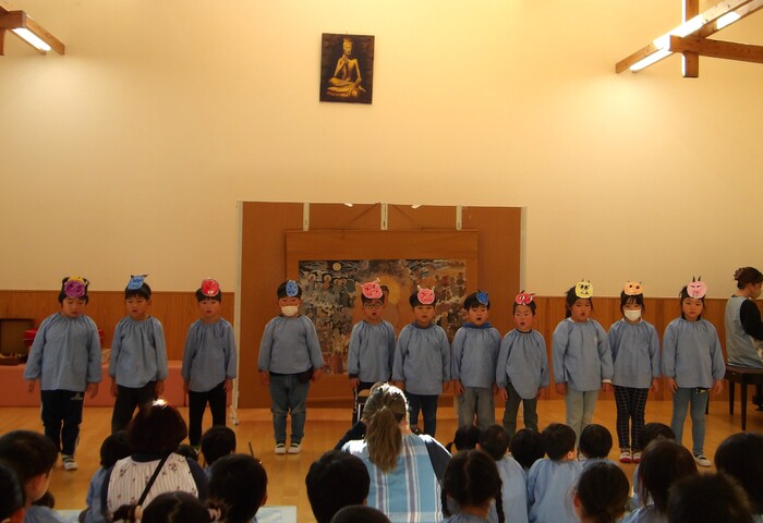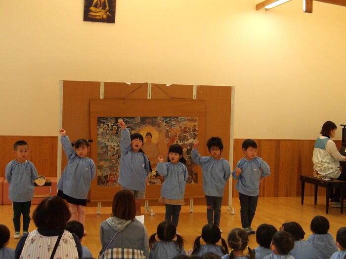 ぞうぐみ・うさぎぐみ・はなぐみ・ほしぐみは合唱♪ つきぐみは「おしゃかさまと悪魔」の劇を発表しました。 | ||