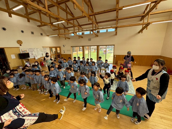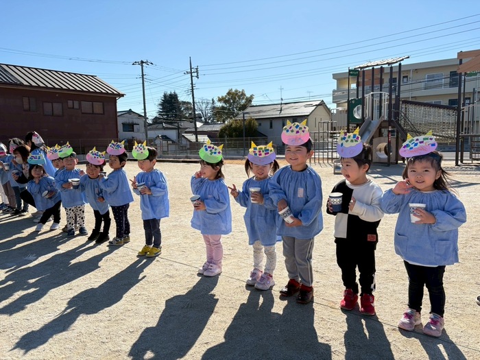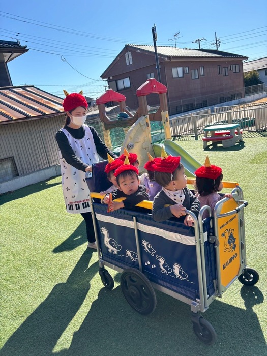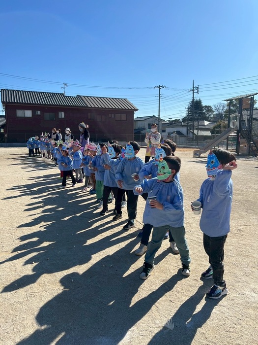 めいしょう保育園の鬼さんは 実は愉快な鬼さんなんです✨ 楽器を持って演奏しながら 楽しく踊りながら登場します‼ | ||