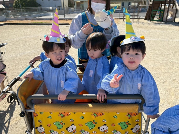 無事豆まきも終わり、 悪いものを追い払い、健康ですくすくと みんなが育つようお願いしました‼ とっても楽しい節分となりました(^^)/ | ||