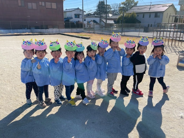 2月3日、豆まき集会を行いました‼ ドキドキ・わくわくで参加していたお友達(^^♪ まず最初に集会を行い、その後に ”鬼のパンツ”をみんなで踊りました☆彡 | ||