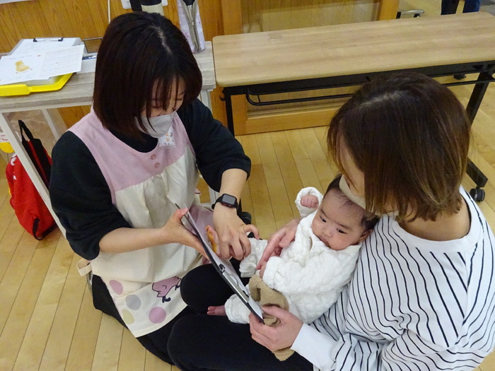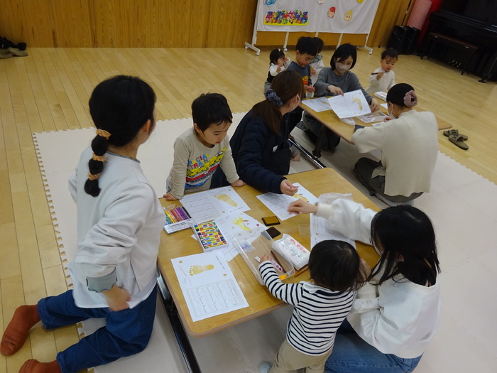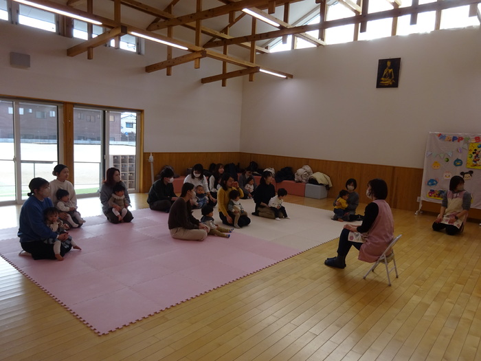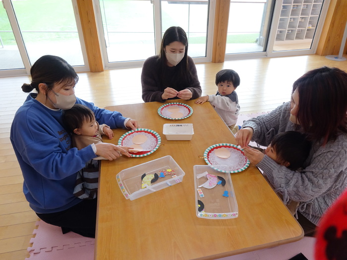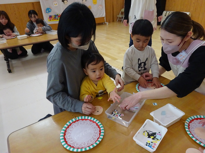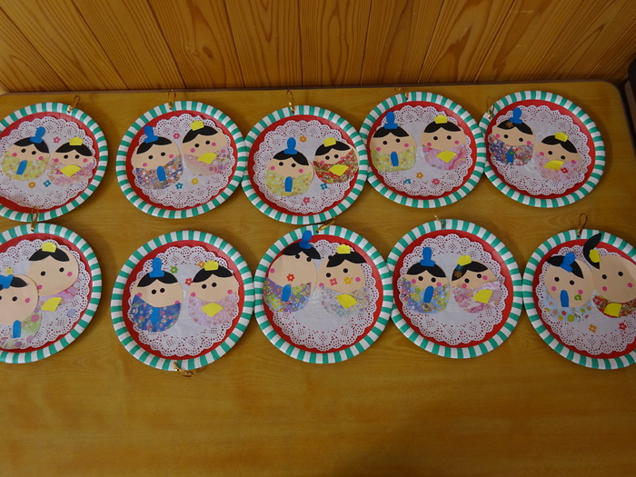 2月のべビキッズはひなまつり製作 まずは朝の会を行い、誕生会を行いました‼ | ||