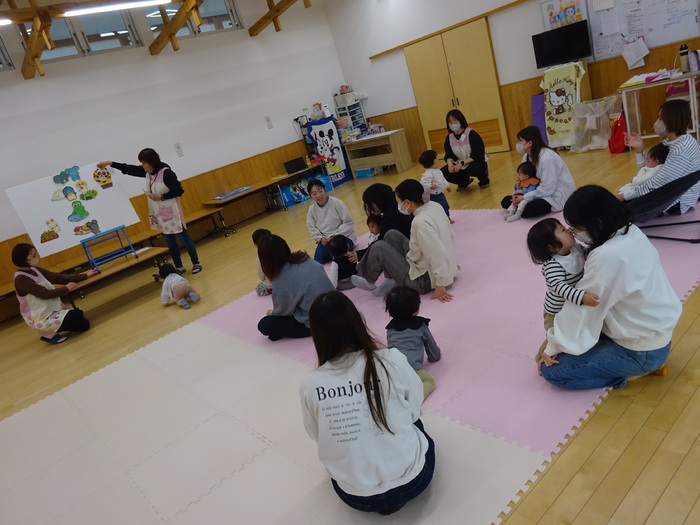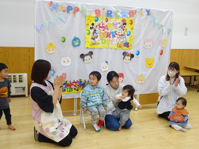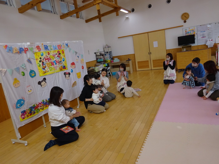 その後は誕生会を行い、おたのしみ会という事で パネルシアターを鑑賞しました☆ | ||