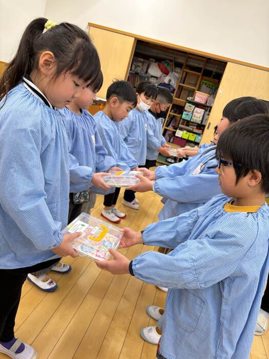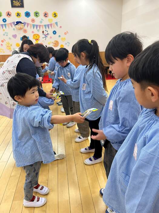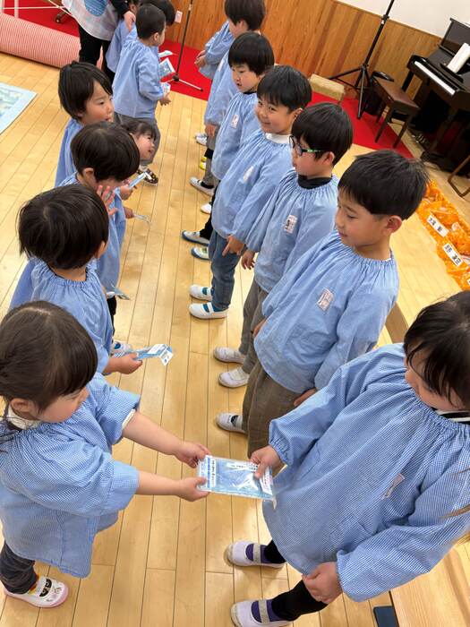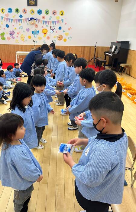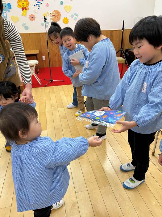 3月16日(月)に全クラスで つき組さんとお別れ会を行いました! つき組さんへのプレゼントを 各クラスごと渡していきました♥ | ||
