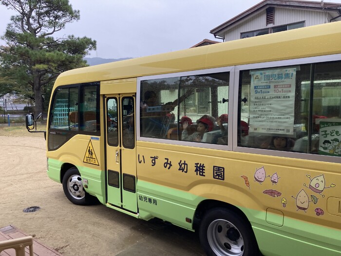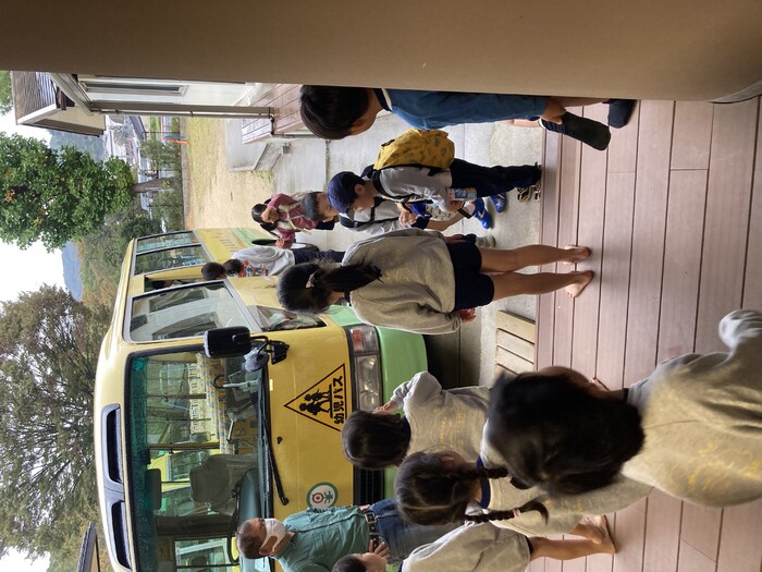| 皆げんきにしゅっぱ~つ!! わくわく、キラキラした笑顔でバスに乗車して行きました♪ | ||