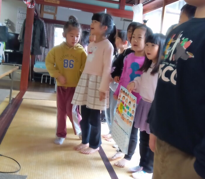 2月の予定 3日(火) 節分の集い・恵方巻き作り 6日(金) かもまる文庫 7日(土) 未満児発表会 9日(月) 英語で遊ぼう教室 11日(水) 建国記念日 12日(木) 体育遊び 13日(金) もちつき会・手作り弁当日 16日(月) 英語で遊ぼう教室 17日(火) 卒園記念写真撮影 20日(金) お誕生会 23日(月) 天皇誕生日 25日(水) 山代地区・ちびっ子の集い 26日(木) 体育遊び・避難訓練 27日(金) かもまる文庫 他・お茶会・小学校一年生を迎える会 | ||