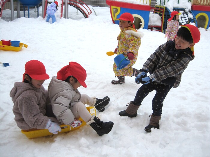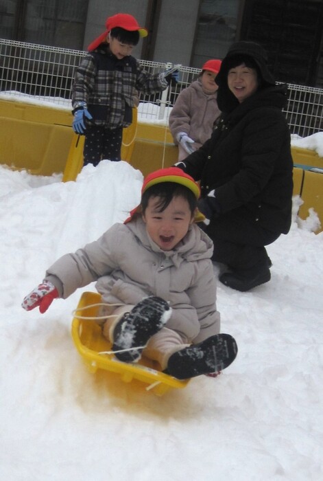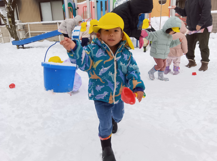 😄戸外遊び・雪遊び❄️ 寒い冬でも子ども達は戸外遊びが大好き!晴れた日には 園庭や運動場に出て元気に体を動かしています。遊びに 夢中になっているうちに体もぽかぽかして、寒さも忘れ るくらいですよ!後半には念願の雪遊びが出来て大喜び の子ども達!冬ならではの体験を楽しみ、いつも以上に はしゃぐ声が響いていました。 | ||