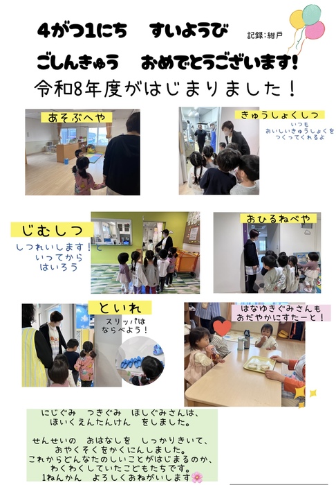 1年間子どもたちが楽しく安全に過ごせていけるようにしていきますのでよろしくお願いします。