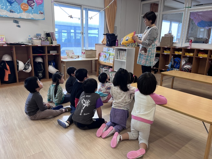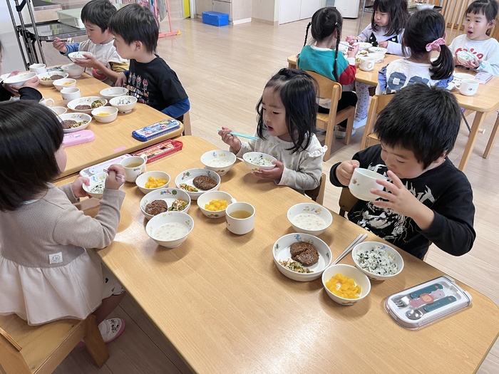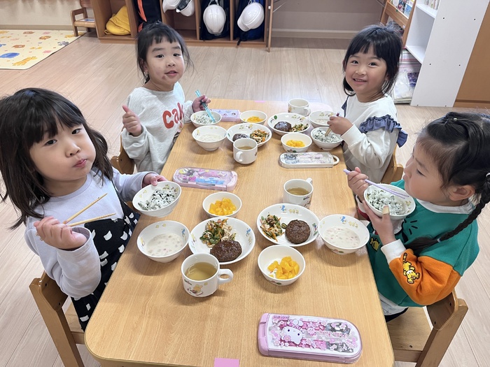 給食室からの火災想定で、全園児がしっかり音や先生の話を聞いて、安全に避難の練習をすることが出来ました。