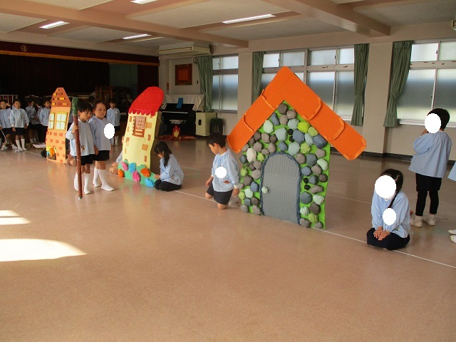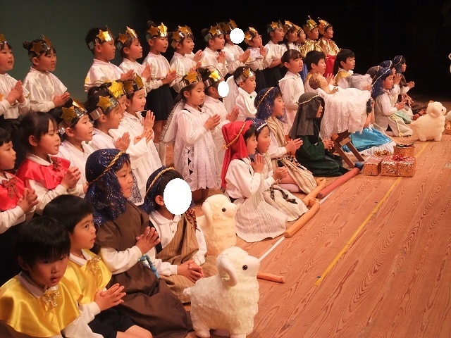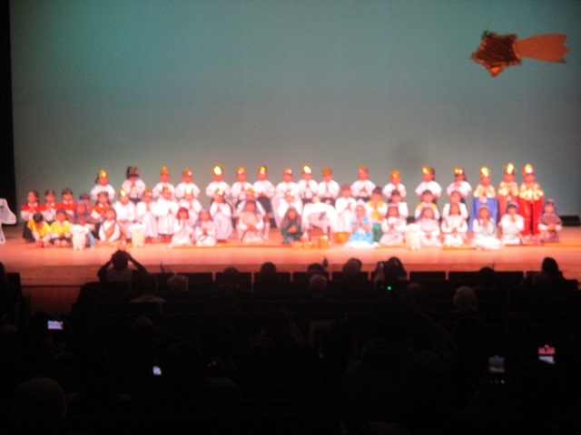 聖劇では、会場に響く大きな声でセリフを言いひとりひとりが上手に役を演じ、みんなでイエス様おめでとうのプレゼントができました。 | ||