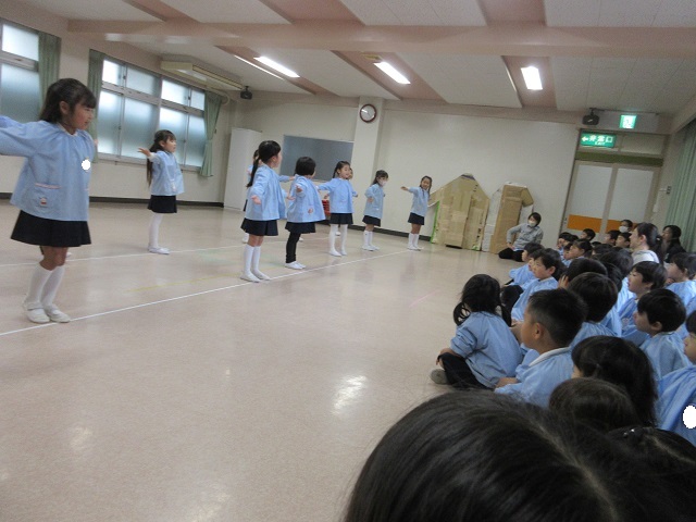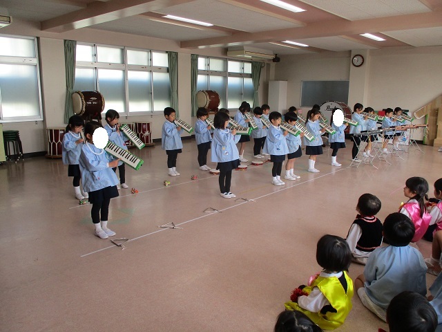 2025/12/2 クリスマス音楽会の練習をしました。「みせて~」「いいよ~」とみんなで見せあいをしています。 頑張る姿やカッコいい姿・可愛い笑顔がたくさん見られました♪ | ||