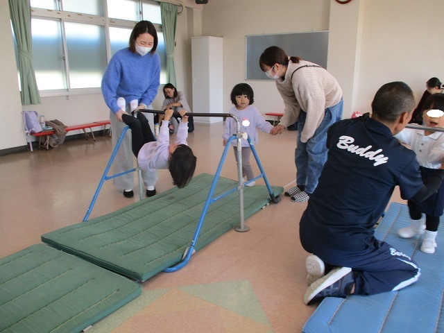 2025/12/4 今日は未就園のお友だちをお迎えして、体操遊びを楽しむ「みんなあつまれ」の日でした。はじめは、音楽に合わせて準備体操。マットや鉄棒ぶら下がりでは保護者の方に見守られながら、元気に身体を動かして笑顔あふれる素敵な時間を過ごすことができました。ご参加いただきありがとうございました。 | ||