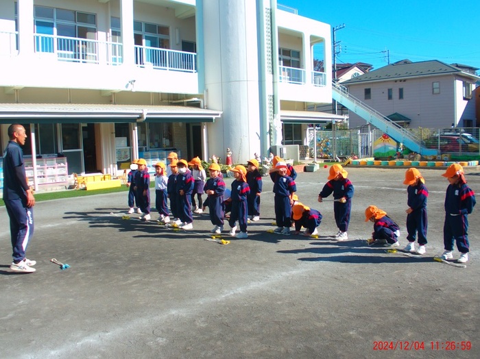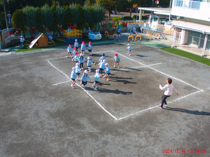 2025/12/1 今日から12月ですが、とっても暖かく素晴らしいお天気でした! かけっこでは、最後まで諦めないで走りきることができました♪ また、お外ではバスケットボールや鬼ごっこをして体をたくさん動かし楽しく遊ぶことができました! 年長組は、体操の時間に前回りや逆上がりに挑戦しました! 「むずかしいよ~、できないよ~」と言っていた子も何度も挑戦して、最後には「できたよ!!」 と嬉しそうな姿が見られました♡ | ||