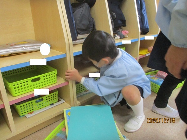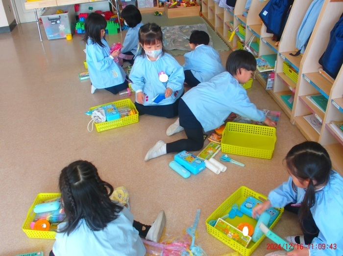 年末に向けて、身の回りの整頓をしました! いつも使っているお道具箱の中身やおもちゃをきれいにし、気持ちよく新年を迎えたいと思います♡ | ||