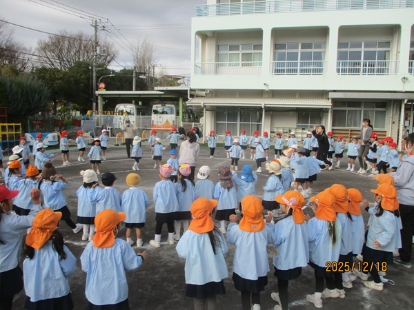 2025/12/18 寒さも厳しくなってきましたが園庭では元気いっぱいクリスマスのダンスを踊りました♪ 子どもたちの嬉しそうな声と笑顔が弾けていました。 みんなクリスマスを心待ちにしています🎅✨ | ||