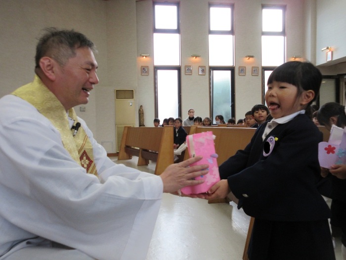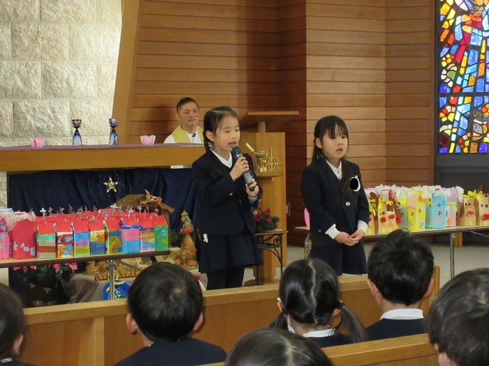 2025/12/19 今日は、二学期最終日でした! 教会では感謝の集いがありました。 今まで頑張ってきた優しい心をみんなの前で発表し、イエスさまに心の花束と献金をお捧げしました! そして、園長先生から冬休みの過ごし方などをお話していただきました! | ||