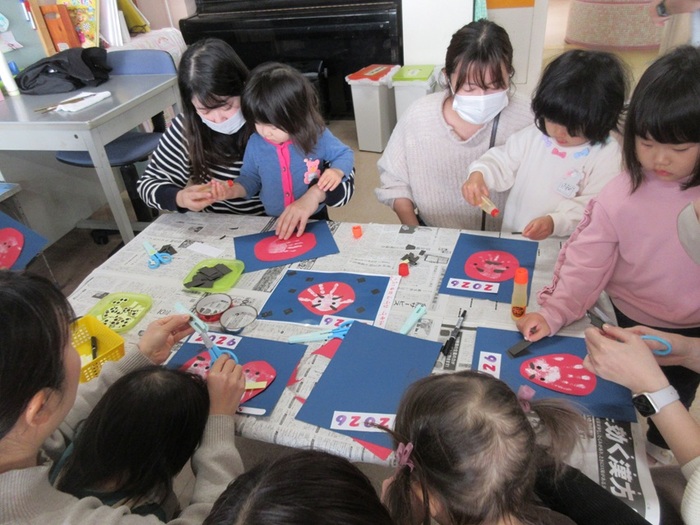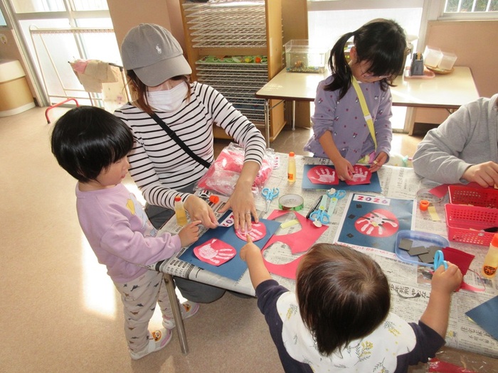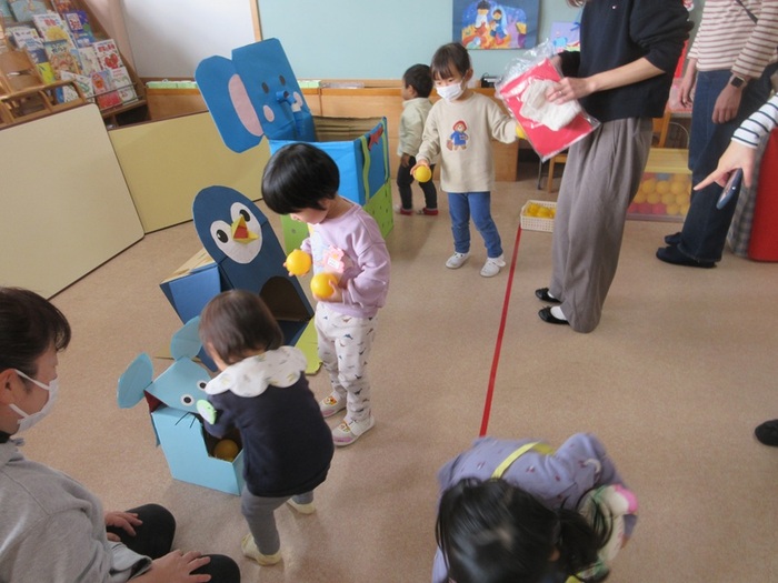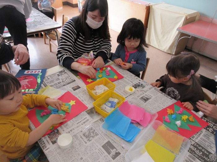 2025/12/22 今日はちびっこ冬遊びを開催し、小さなお友だちが遊びに来てくれました。 遊戯室に集まり絵本を見たあとは…クリスマスツリーの制作、ひもくじ、ボール投げ、手形アートのコーナーをお家の方と一緒に楽しみました!可愛い子どもたちの笑顔が沢山見られて嬉しかったです。 風が強く寒い一日でしたが幼稚園に遊びに来てくださりありがとうございました。 来年度も親子ふれあいの行事を予定しています。ぜひ、また遊びに来てくださいね。 皆さん、素敵なクリスマス&よいお年をお迎えくださいね。 | ||